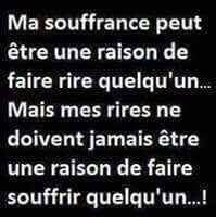 Ma souffrance peut être une raison de faire rire quelqu’un mais mes rires ne doivent jamais être une raison de faire souffrir quelqu’un !