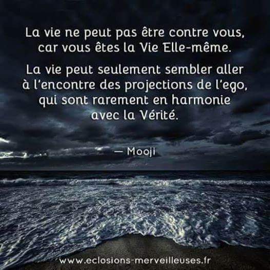La vie ne peut pas être contre vous car vous êtes la Vie elle-même. La vie peut seulement sembler aller à l’encontre des projections de l’ego qui sont rarement en harmonie avec la vérité. – Mooji