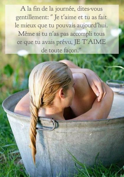A la fin de la journée, dites-vous gentiment : «Je t’aime et tu as fait le mieux que tu pouvais aujourd’hui. Même si tu n’as pas accompli tout ce que tu avais prévu, JE T’AIME de toute façon.»