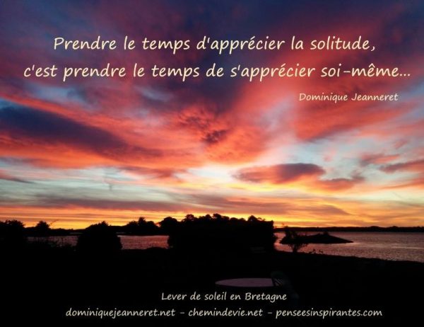 Apprécier la solitude Publié par Dominique le 17 avril 20216 avril 2021 Prendre le temps d’apprécier la solitude, c’est prendre le temps de s’apprécier soi-même. – Dominique Jeanneret Lire la suite Article précédent Le soleil et l’amourArticle suivant Chaque étape de la vie