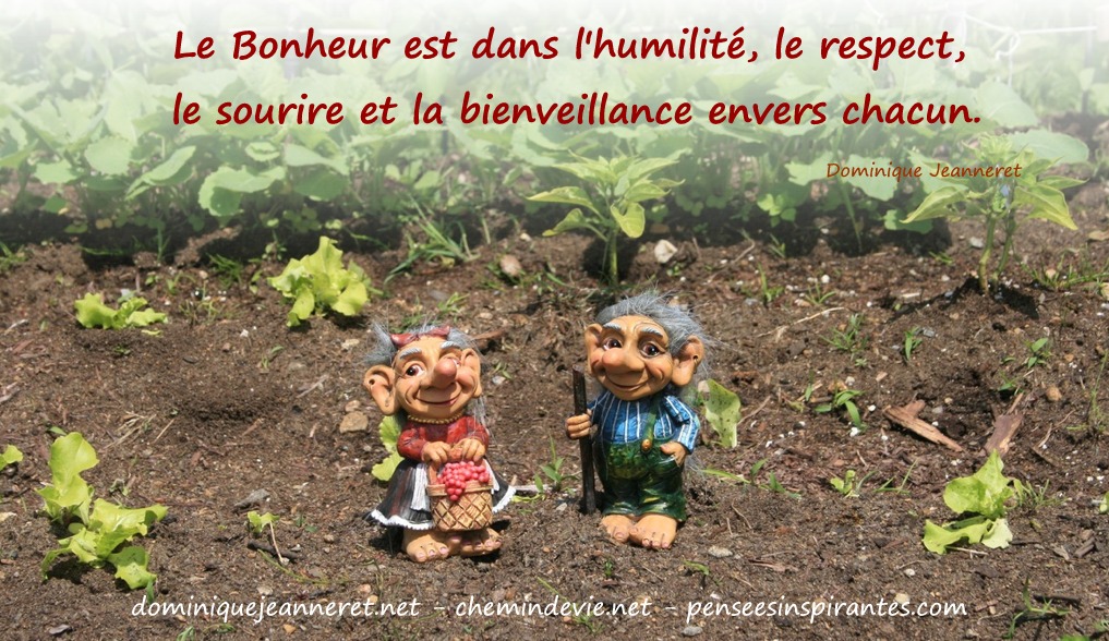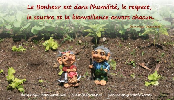 Le Bonheur Publié par Dominique le 26 mars 202123 mars 2021 Le Bonheur est dans l’humilité, le respect, le sourire et la bienveillance envers chacun. – Dominique Jeanneret . Lire la suite Article précédent Quand votre coeur est tristeArticle suivant Les souffrances