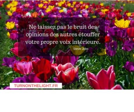 Ne laissez pas le bruit des opinions Publié par Dominique le 14 mars 201711 mars 2017 Ne laissez pas le bruit des opinions des autres étouffer votre propre voix intérieure. – Steve Jobs , Lire la suite Article précédent Tiens-toi prêtArticle suivant L’accomplissement du bien d’autrui