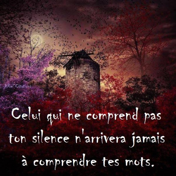 Celui qui ne comprend pas ton silence Publié par Dominique le 16 septembre 20217 septembre 2021 Celui qui ne comprend pas ton silence n’arrivera jamais à comprendre tes mots. é Lire la suite Article précédent Si on pouvait regarder dans le coeur des gensArticle suivant Rester dans le connu