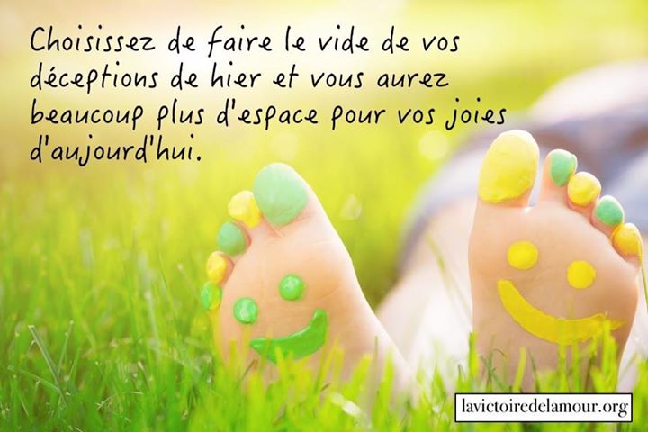 Choisissez de faire le vide de vos déceptions de hier et vous aurez beaucoup plus d’espace pour vos joies d’aujourd’hui.