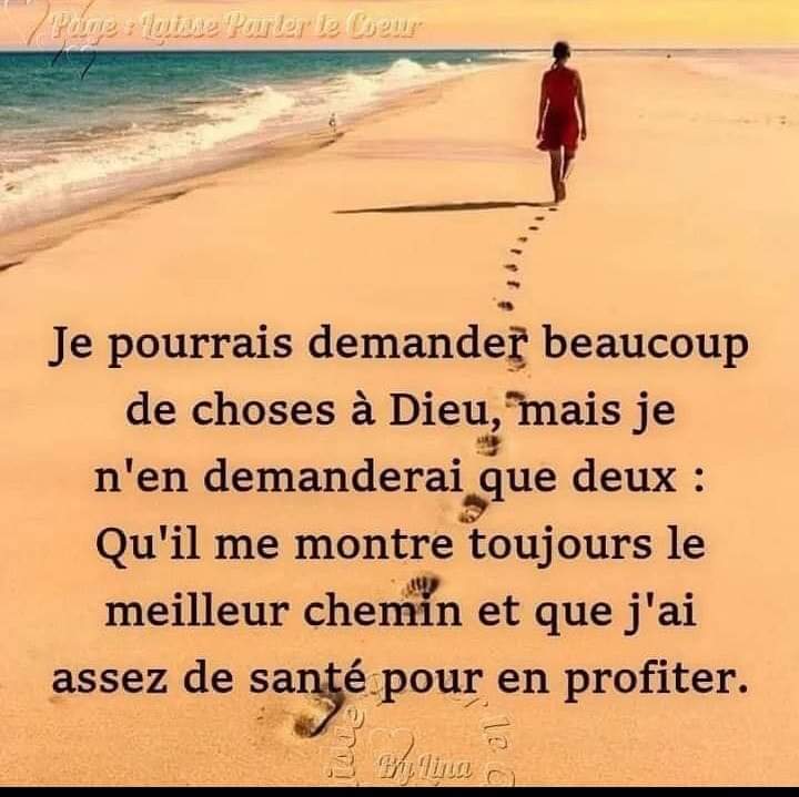 Je pourrais demander beaucoup de choses à Dieu mais je n’en demanderai que deux : qu’il me montre toujours le meilleur chemin et que j’aie assez de santé pour en profiter.