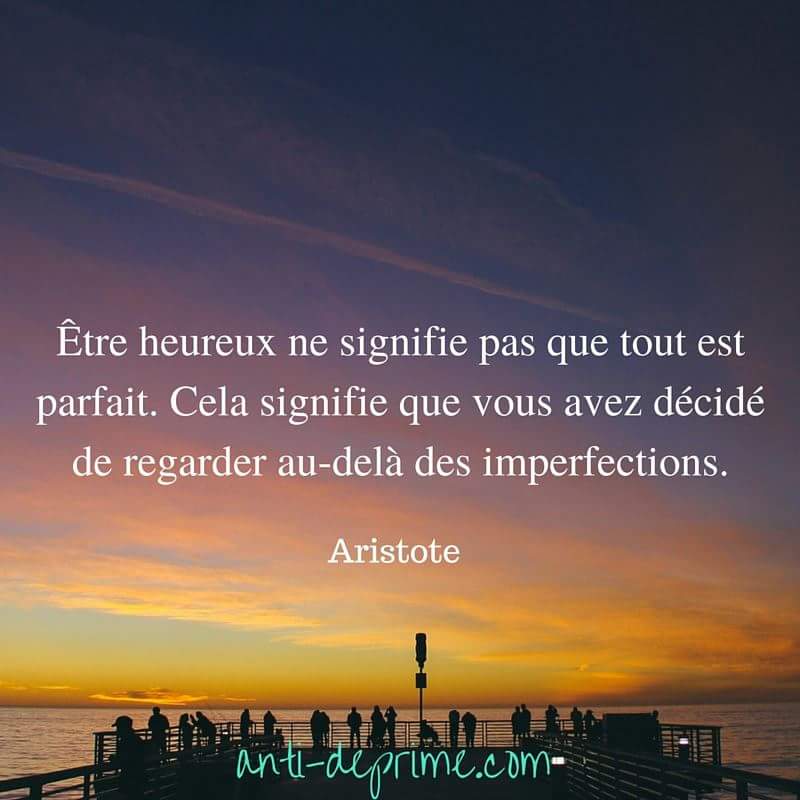Être heureux ne signifie pas que tout est parfait. Cela signifie que vous avez décidé de regarder au-delà des imperfections. – Aristote