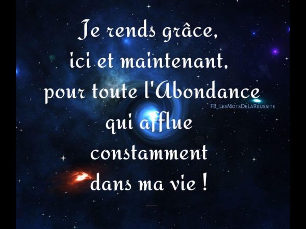 Je rends grâce, ici et maintenant, pour toute l’abondance qui afflue constamment dans ma vie !