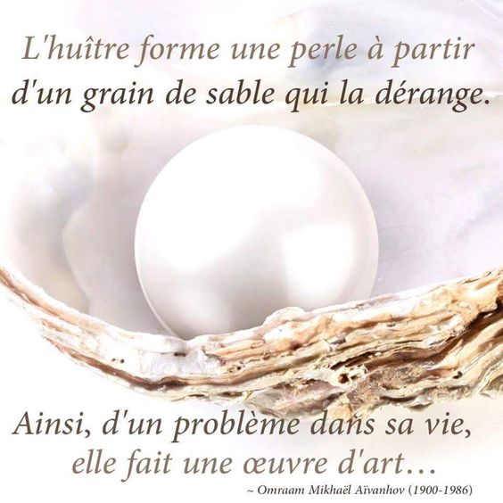 L’huitre forme une perle à partir d’un grain de sable qui la dérange. Ainsi, d’un problème dans sa vie, elle fait une oeuvre d’art. – O.M. Aïvanovh