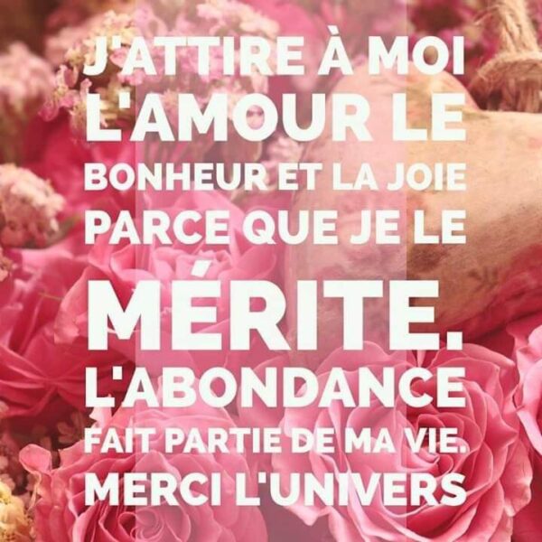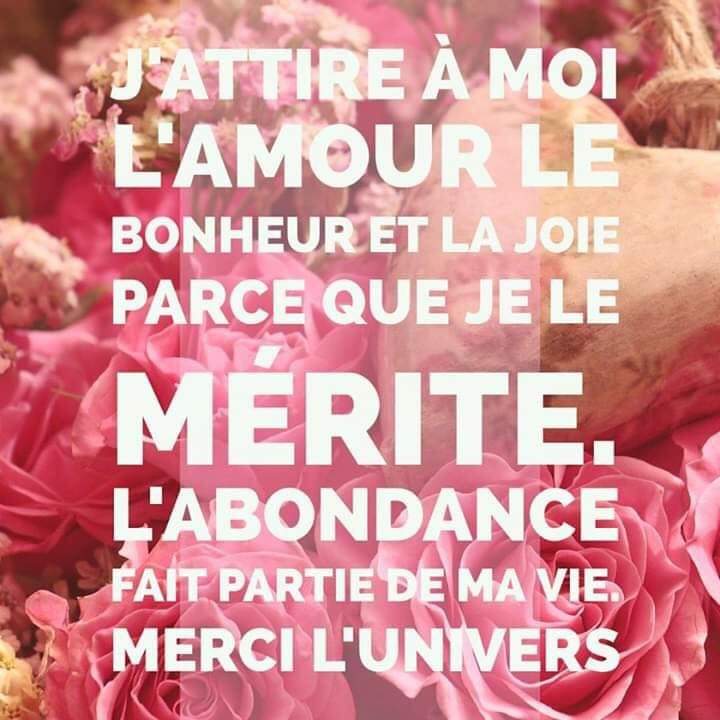 J’attire à moi Publié par Dominique le 16 mai 202314 mai 2023 J’attire à moi l’amour et la joie parce que je le mérite. L’abondance fait partie de ma vie. Merci l’Univers. Lire la suite Article précédent L’abondance par droit divinArticle suivant Ne pas être d’accord
