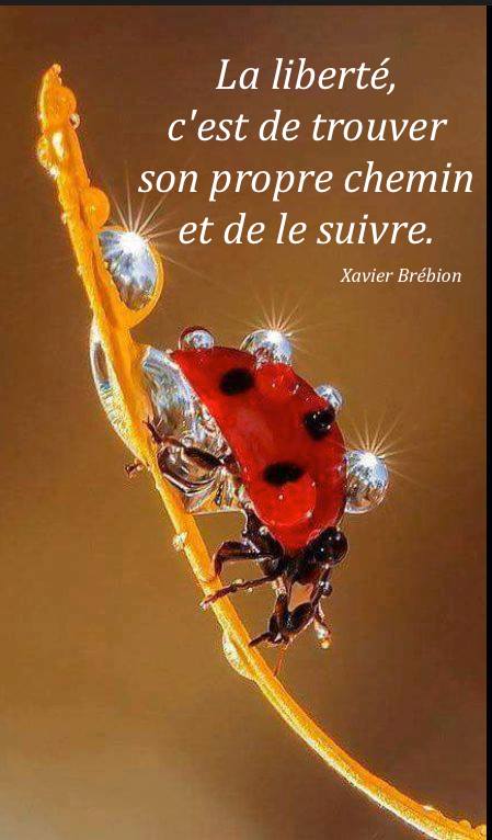 La liberté Publié par Dominique le 30 juin 201829 juin 2018 La liberté, c’est de trouver son propre chemin et de le suivre – Xavier Brébion Enregistrer Enregistrer Lire la suite Article précédent Laisser partirArticle suivant NOUVEAU ! Gardez les pensées !