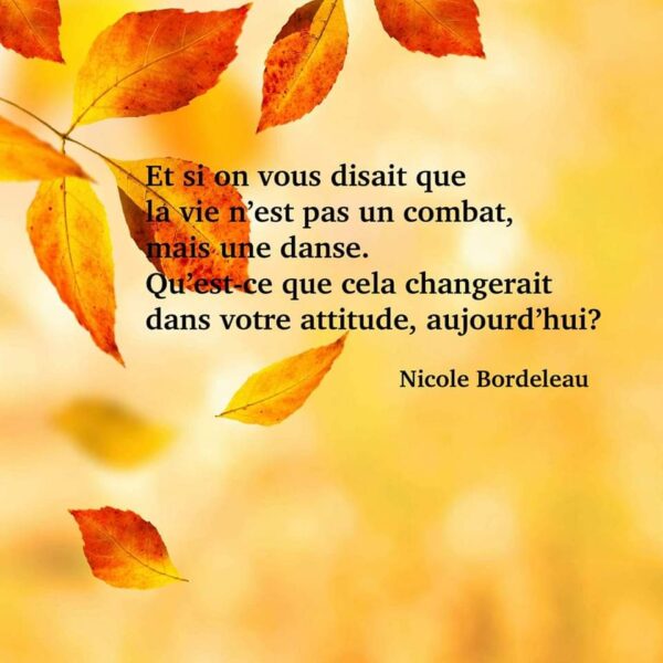 Et si on vous disait que la vie n’est pas un combat mais une danse. Qu’est-ce que cela changerait dans votre attitude aujourd’hui ? – Nicole Bordeleau