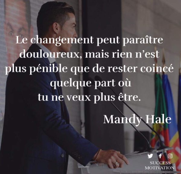 Le changement peut paraître douloureux mais rien n’est plus pénible que de rester coincé quelque part où tu ne veux plus être. – Mandy Hale