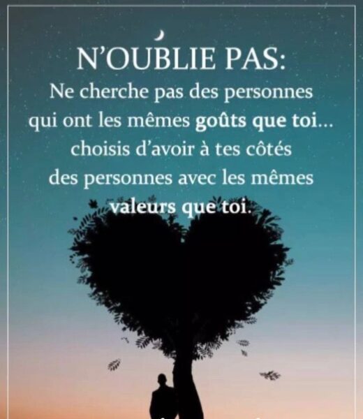 N’oublie pas : ne cherche pas des personnes qui ont les mêmes goûts que toi. Choisis d’avoir à tes côtés des personnes avec les mêmes valeurs que toi.
