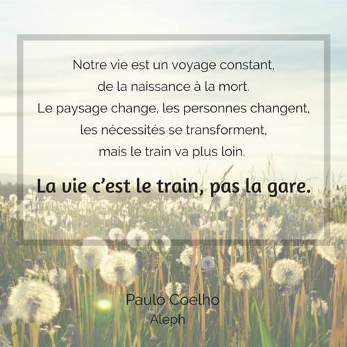 Notre vie est un voyage constant, de la naissance à la mort. Le paysage change, les personnes changent, les nécessités se transforment mais le train va plus loin. – Paulo Coelho, Aleph