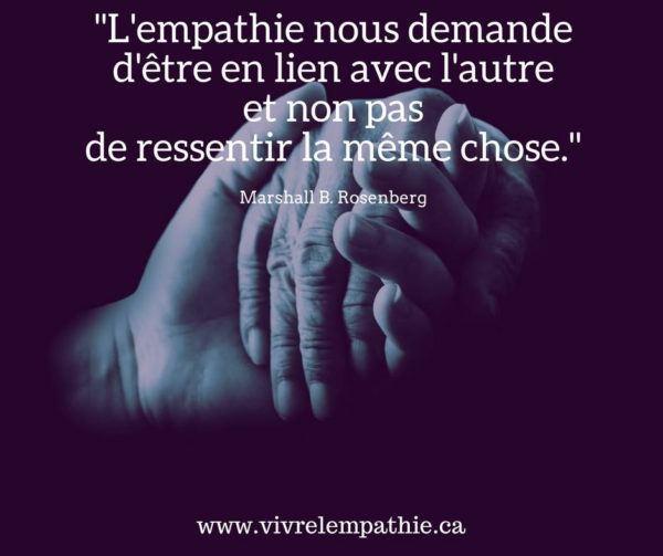 L’empathie nous demande d’être en lien avec l’autre et non pas de ressentir la même chose. – Marshall B. Rosenberg, fondateur de la Communication Non Violente (CNV)