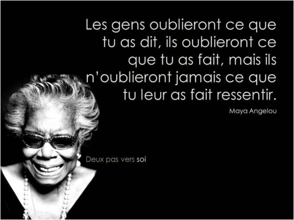 Les gens oublieront ce que tu as dit, ils oublieront ce que tu as fait mais ils n’oublieront jamais ce que tu leur as fait ressentir. – Maya Angelou