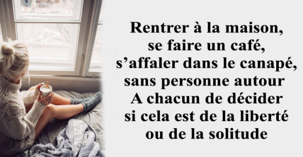 Rentrer à la maison, se faire un café, s’affaler dans le canapé, sans personne autour. A chacun de décider si cela est de la liberté ou de la solitude.