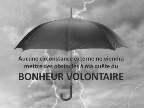 Aucune circonstance externe ne viendra mettre des obstacles à ma quête du Bonheur volontaire.