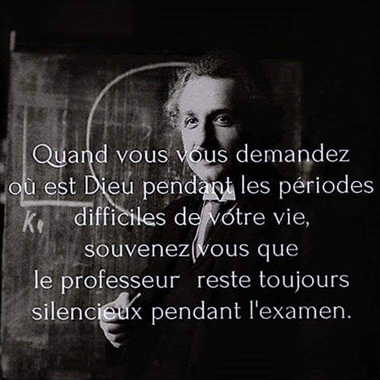 Quand vous vous demandez où est Dieu pendant les périodes difficiles de votre vie, souvenez-vous que le professeur reste toujours silencieux pendant l’examen.