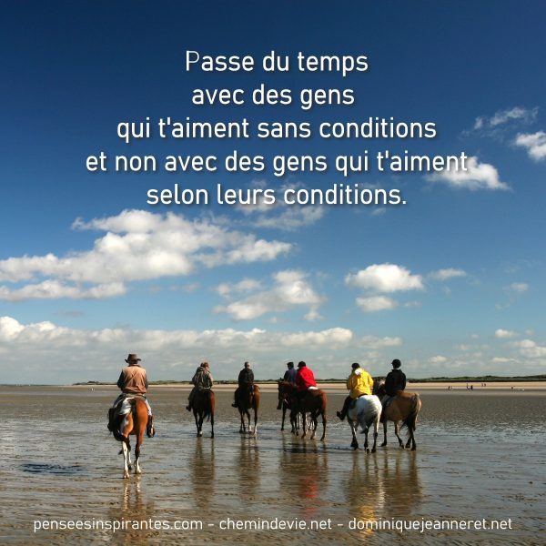 Passe du temps avec des gens qui t’aiment sans conditions et non avec des gens qui t’aiment selon leurs conditions.