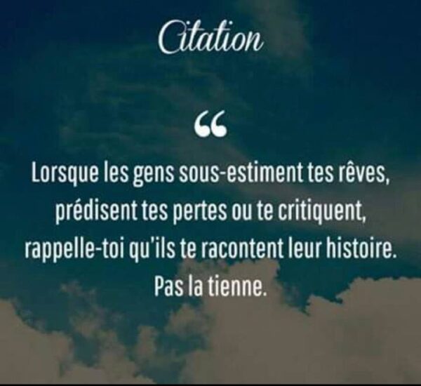 Lorsque les gens sous-estiment tes rêves, prédisent tes pertes ou te critiquent, rappelle-toi qu’ils te racontent leur histoire. Pas la tienne.