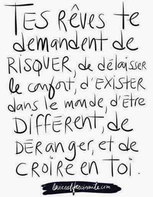 Tes rêves te demandent de risquer, de délaisser le confort, d'exister dans le monde, d'être différent, de déranger et de croire en toi !