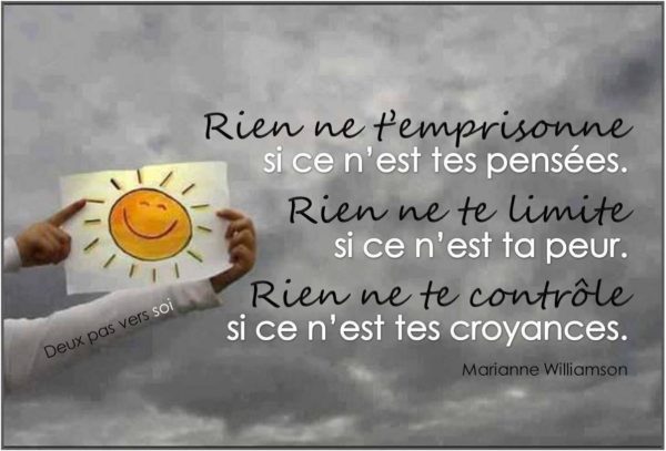 Rien ne t’emprisonne si ce n’est tes pensées. Rien ne te limite si ce n’est ta peur. Rien ne te contrôle si ce n’est tes croyances. – Marianne Williamson