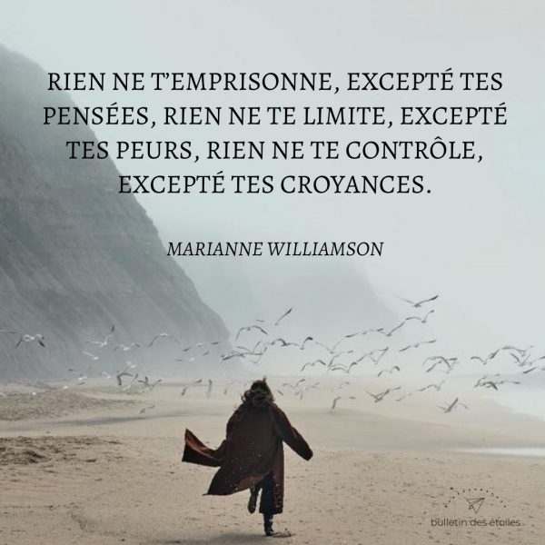 Rien ne t’emprisonne excepté tes pensées. Rien ne te limite excepté tes peurs. Rien ne te contrôle excepté tes croyances. – Marianne Williamson