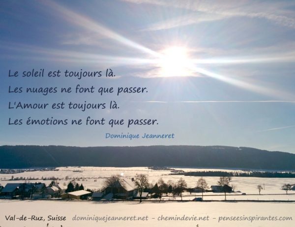 Le soleil est toujours là. Les nuages ne font que passer. L’Amour est toujours là. Les émotions ne font que passer. – Dominique Jeanneret