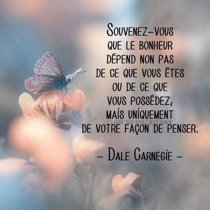 Souvenez-vous que le bonheur dépend non pas de ce que vous êtes ou de ce que vous possédez mais uniquement de votre façon de penser. – Dale Carnegie