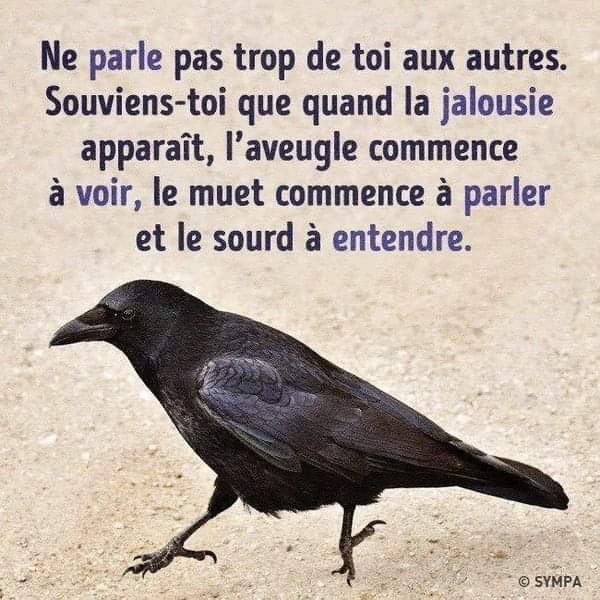 Ne parle pas trop de toi aux autres. Souviens-toi que, quand la jalousie apparaît, l’aveugle commence à voir, le muet commence à parler et le sourd à entendre.