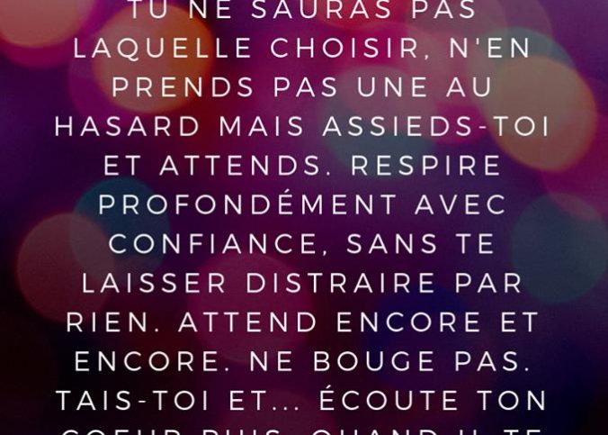 Quand plusieurs routes s’offriront à toi et que tu ne sauras pas laquelle choisir, n’en prends pas une au hasard mais assieds-toi et attends. Respire profondément avec confiance sans te laisser distraire par rien. Attends encore et encore. Ne bouge…