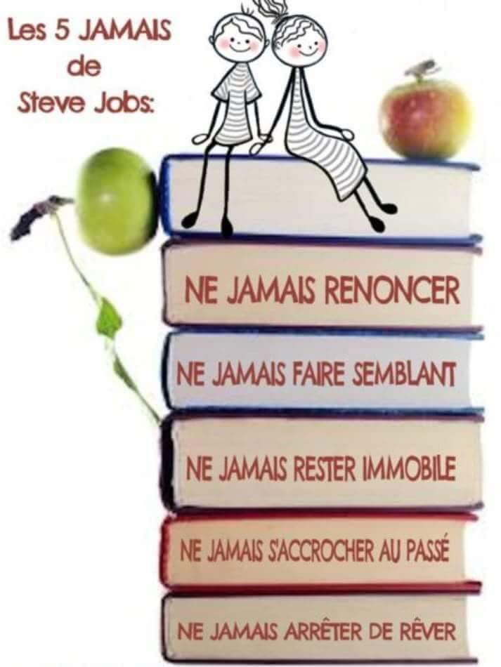 Ne jamais renoncer. Je jamais faire semblant. Ne jamais rester immobile. Ne jamais s’accrocher au passé. Ne jamais arrêter de rêver. Steve Job est le fondateur des ordinateurs Apple/McIntosh
